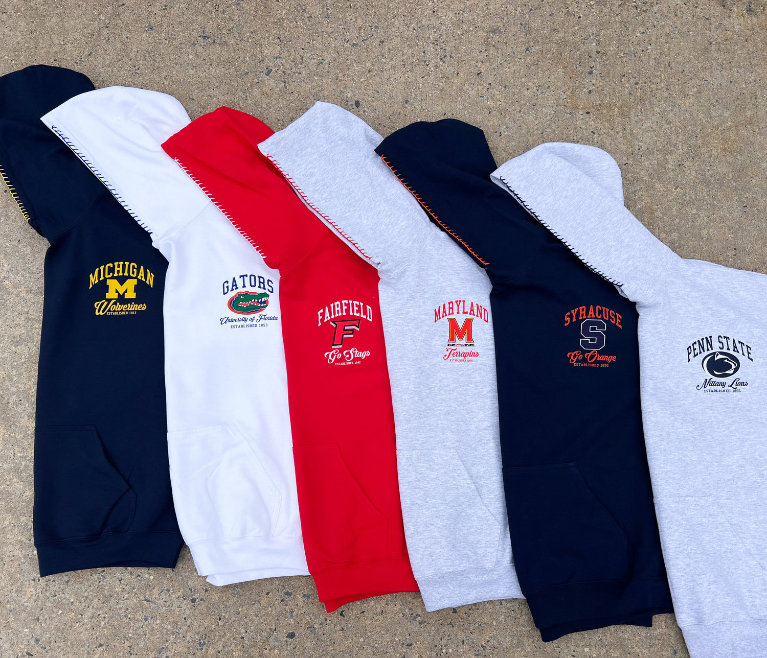 Custom college pieces perfect for your upcoming tailgate. Stand out on campus...